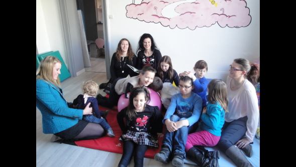 Quelques enfants en compagnie des quatre assistantes maternelles : Alexandra Bienkowski, Catherine Ossart, Virginie Duburque et Audrey Goetinck (de gauche à droite).
