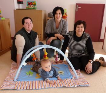 Mélanie Cros et Rose-Marie Salvignol entourent Ingrid, une maman très heureuse d’avoir trouver une garderie pour Lenny.