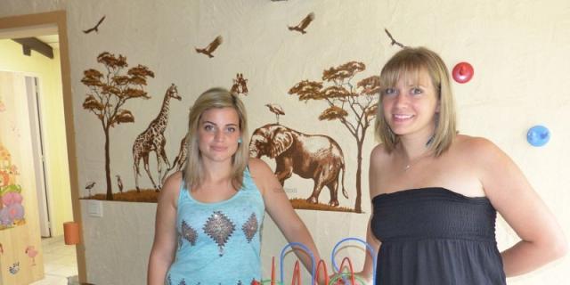 Aurore et Andréa dans leurs locaux prêts pour accueillir les enfants.
