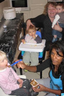 « Rita Duhamel est une amie très proche, depuis des années. Gisèle Faes travaille chez moi depuis cinq ans, comme employée de maison. Il y a une bonne complicité, une bonne entente entre nous trois. C’est plutôt familial, sans chichis. Tout pour le bien-être de l’enfant. Et toutes les trois au même niveau, pas de chef, rien de tout ça ! »