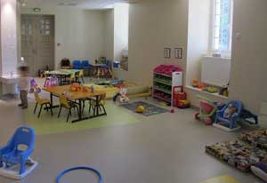 Sont mis à la disposition des assistantes maternelles : un local d’accueil, un bureau, une grande salle de jeux, deux chambres, une cuisine et un petit jardin ….tout pour que les enfants soient dorlotés et puissent s’’épanouir dans une vie en petite collectivité.